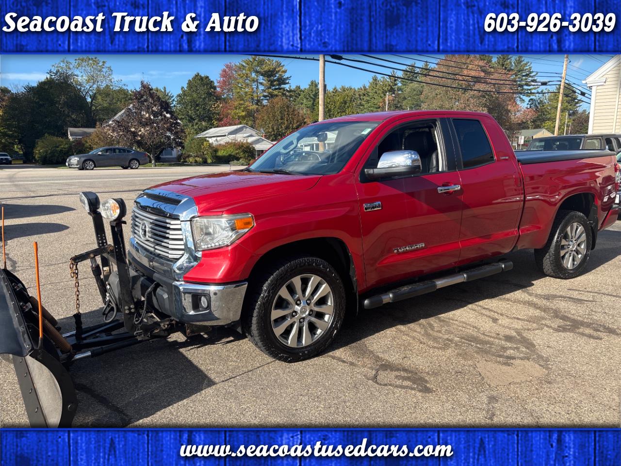 2016 Toyota tundra Limited double cab, 4 x 4 automatic transmission loaded with air conditioning, power windows, power door, locks, power, mirrors, cruise control tilt wheel navigation system back up camera power heated leather seats. Bluetooth comes with a nice stainless plow with hand controller for only 25 995 runs and drives great for more information visit our website at Seacoast used cars.com.