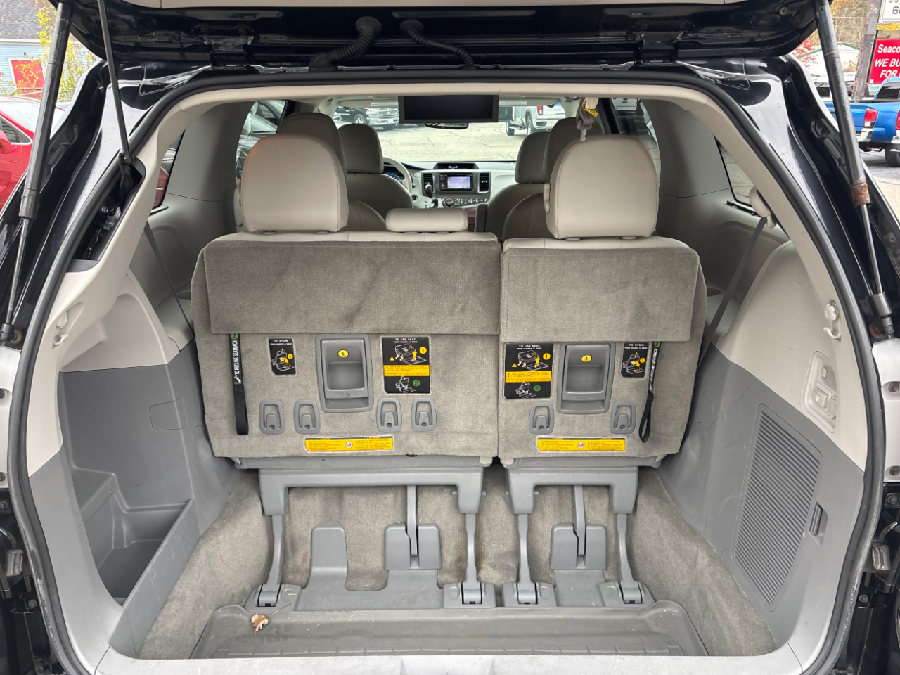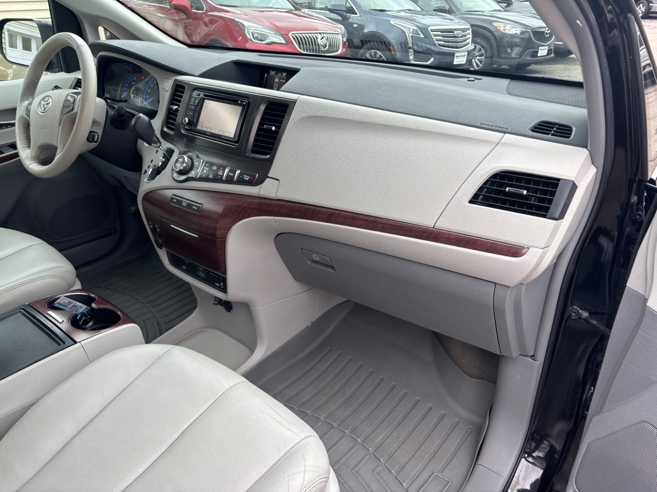 One owner dealer serviced 2013 Toyota sienna minivan all-wheel-drive automatic transmission XLE loaded with air conditioning power windows power door locks power mirrors back up camera satellite radio heated leather seats with third row seating sunroof DVD player Bluetooth with 108k miles for 14 995 runs and drives great for more information visit our website at seacoast usedcars.com